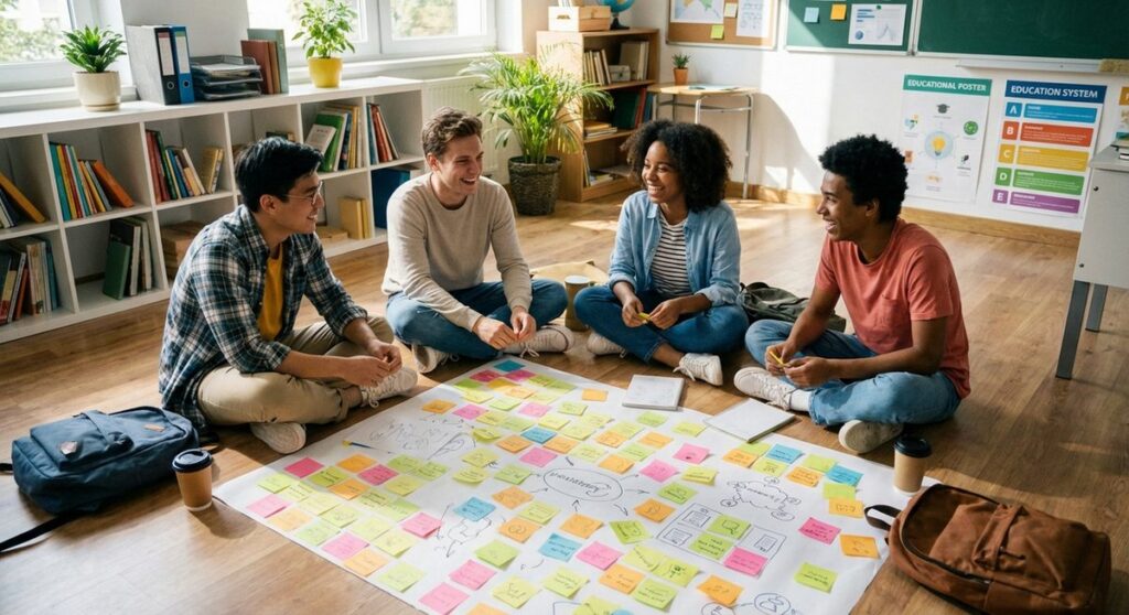 El aprendizaje colaborativo es una estrategia pedagógica que organiza a los estudiantes en pequeños grupos para alcanzar objetivos de aprendizaje comunes. A diferencia del trabajo en grupo tradicional, el aprendizaje colaborativo está estructurado de forma que cada miembro del grupo es responsable tanto de su propio aprendizaje como del de sus compañeros.